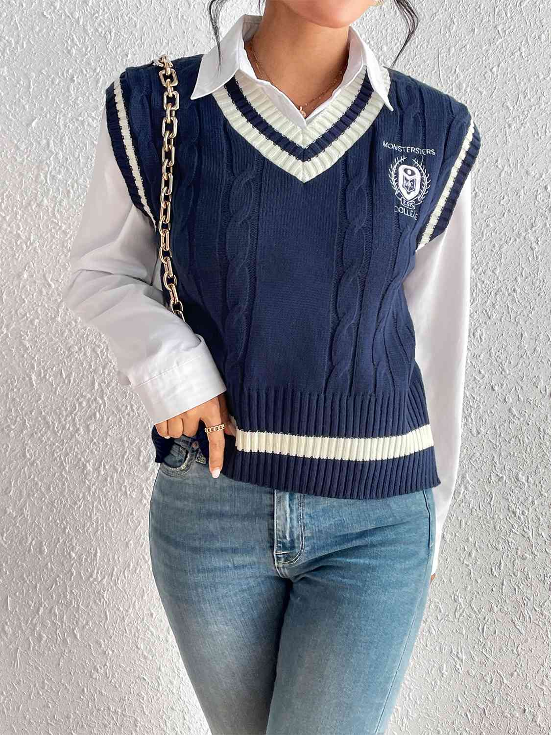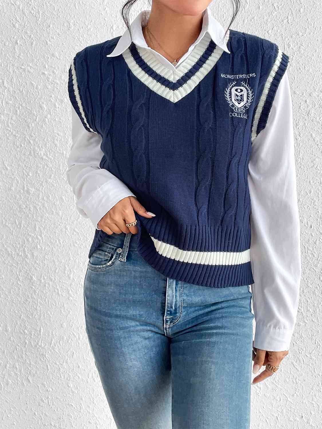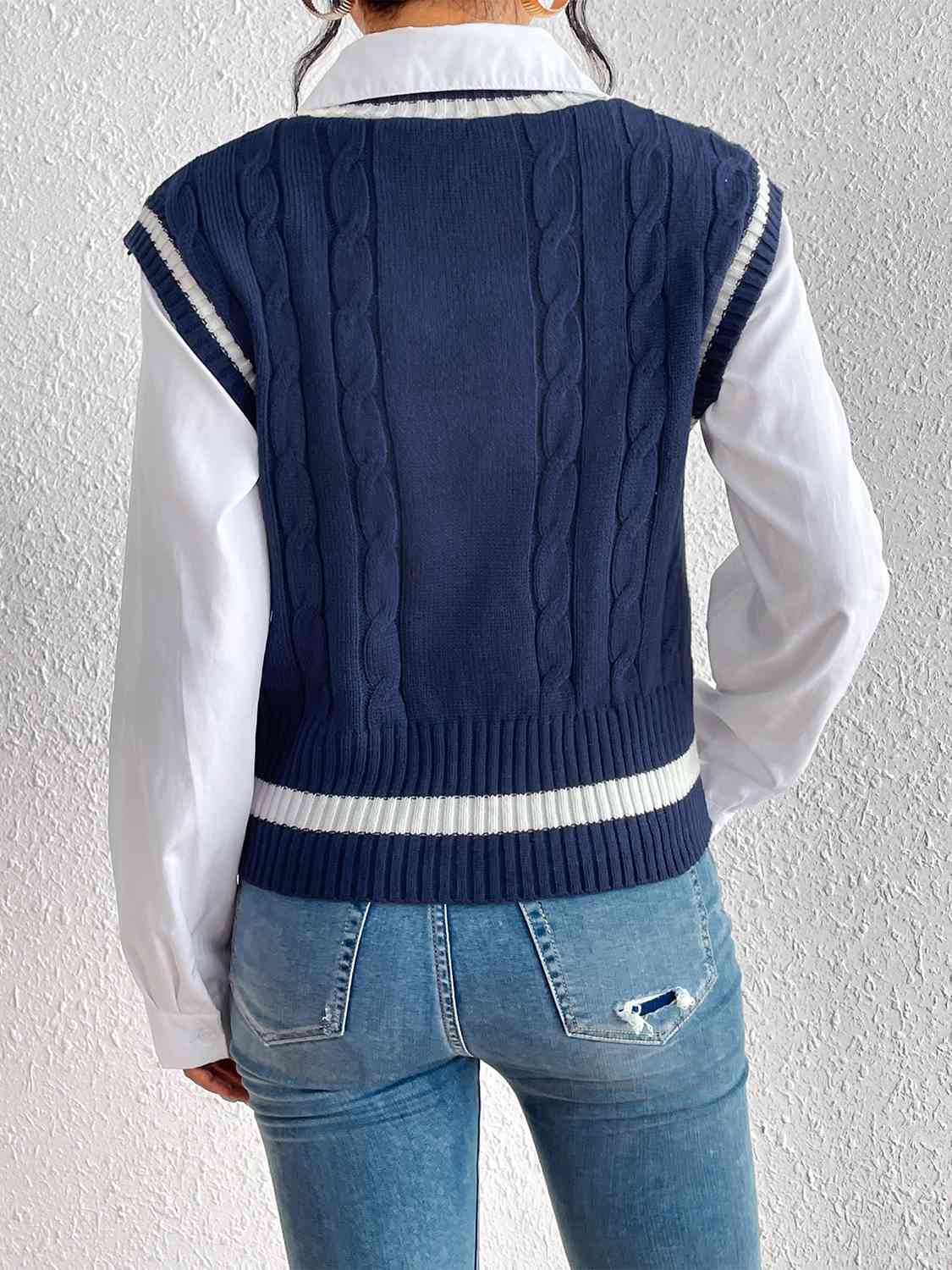 Cable-Knit V-Neck Sweater Vest