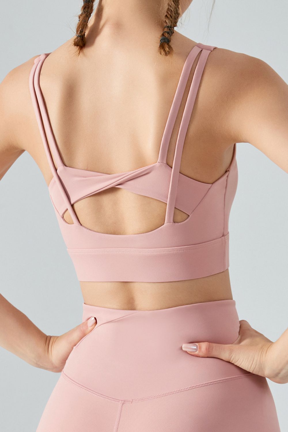 Faux Layered Twist Back Cutout Sports Bra
