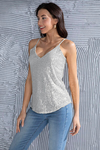 Sequin V-Neck Spaghetti Strap Cami