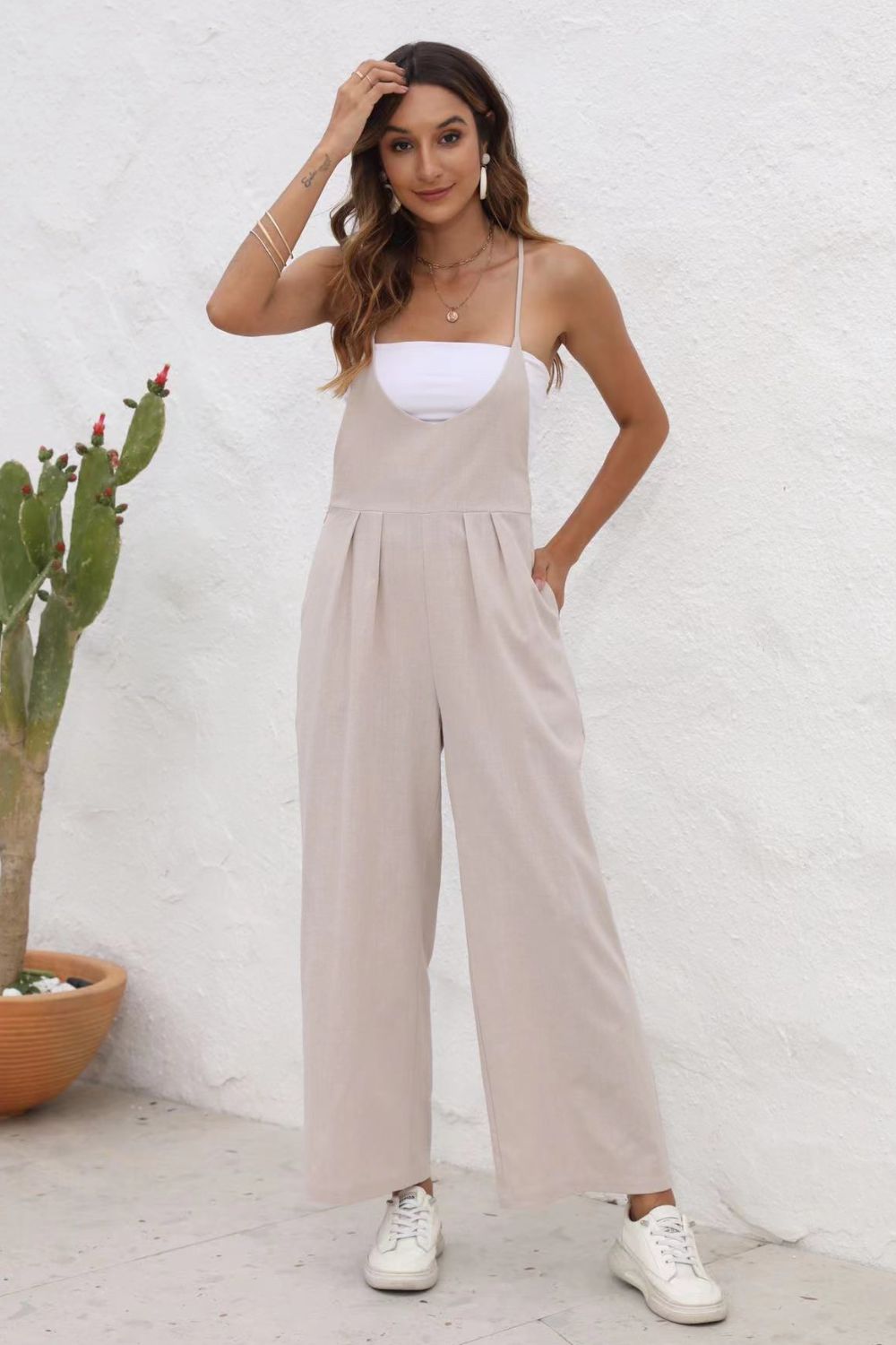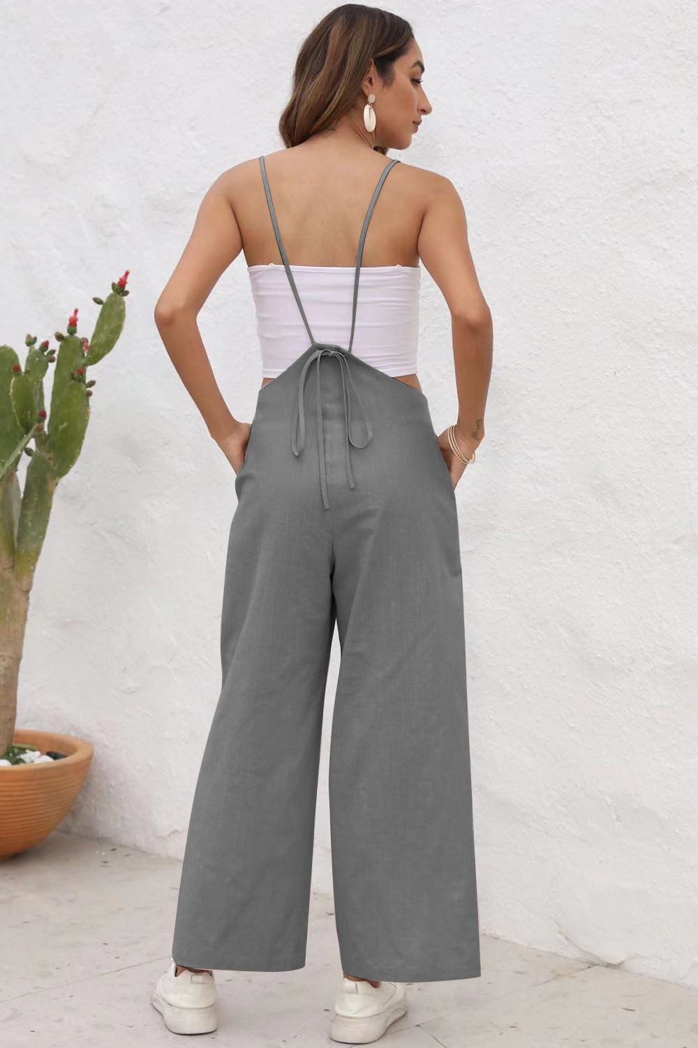 Tie Back Sleeveless Wide Leg Jumpsuit
