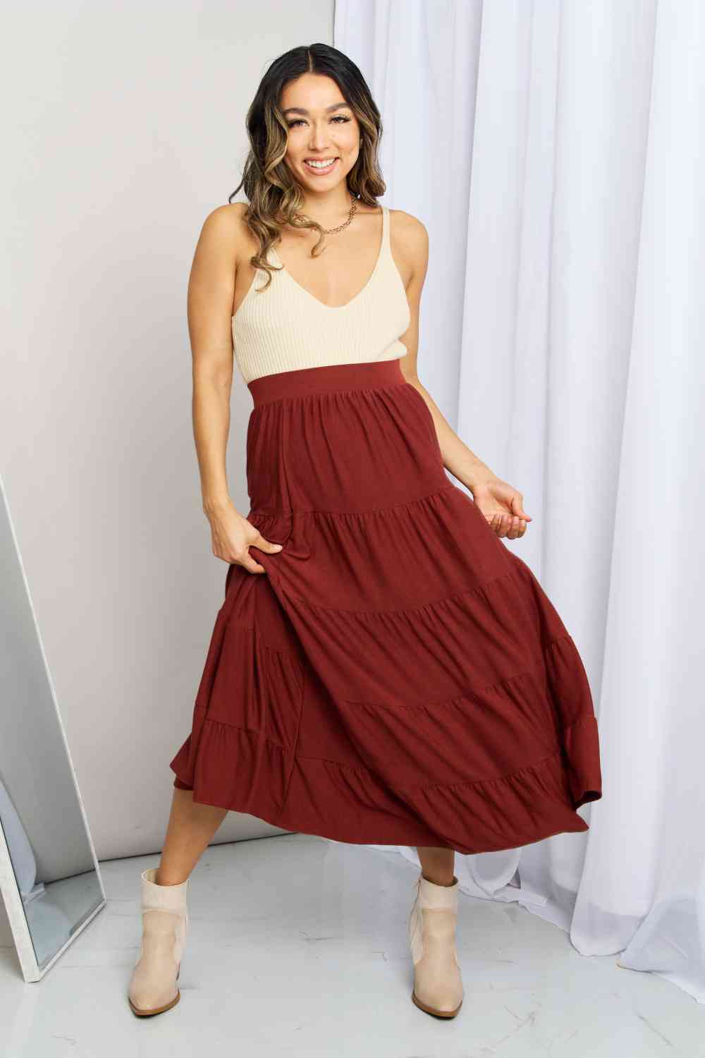 Zenana Full Size Wide Waistband Tiered Midi Skirt